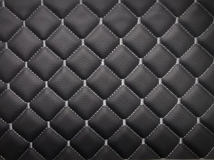 Skaj Detel karo grey to elegancka, pikowana wersja sztucznej skóry Detel black, która wyróżnia się charakterystycznym przeszyciem popielatą nicią w klasyczny wzór karo. Wzór karo to kwadrat obrócony o 45 stopni o wymiarach 37x37mm. To nie tylko estetyczne wykończenie, lecz także połączenie komfortu, stylu oraz trwałości. Dlatego materiał doskonale sprawdzi się zarówno w tapicerce samochodowej, jak i w projektach kontraktowych, w których liczy się dodatkowy efekt zdobniczy.