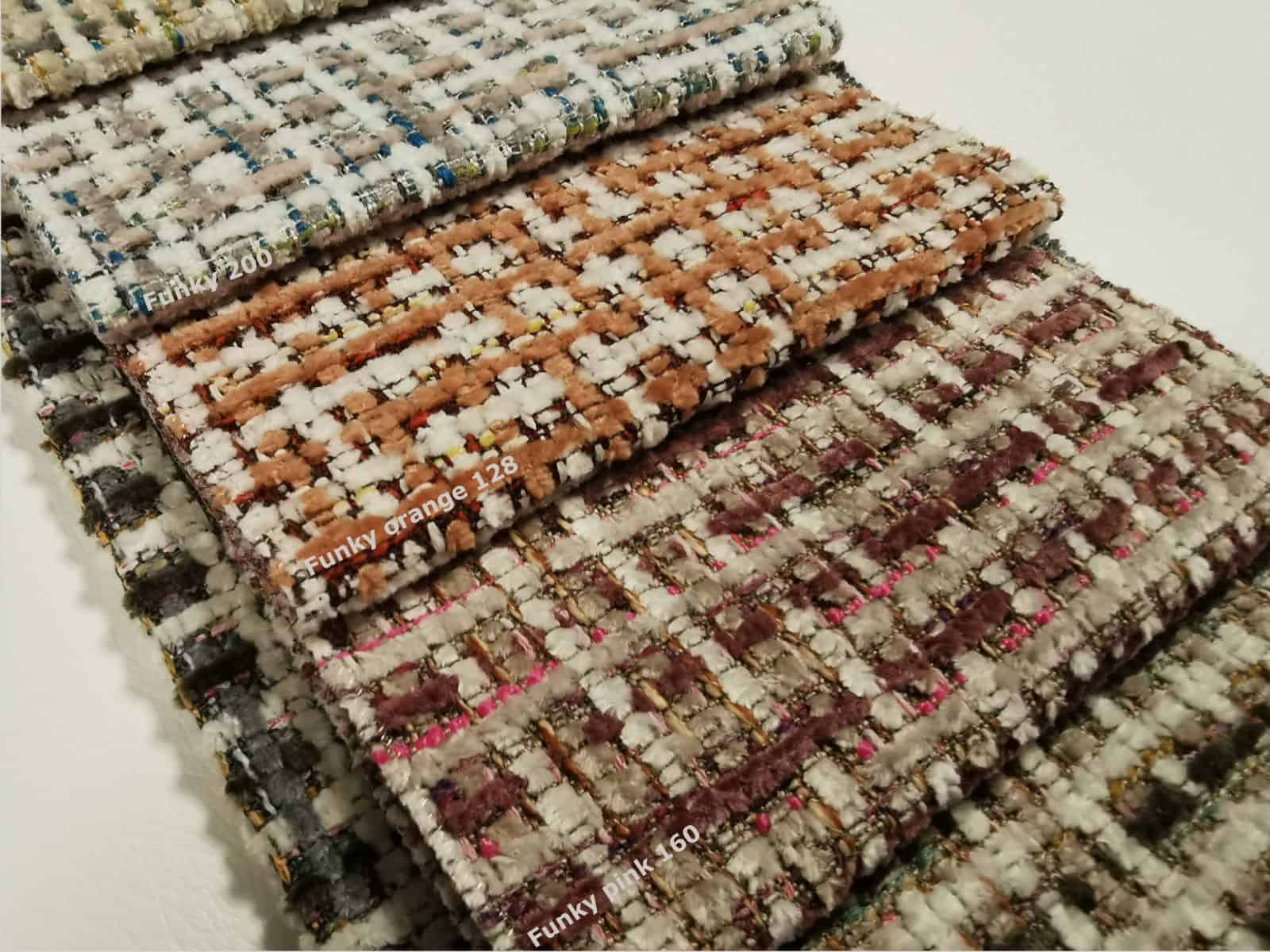 Funky - to kolekcja szenilowych tkanin o wyrazistym charakterze. Energetyczne połączenia kilku kolorów tworzą nowoczesny, nieco retro wzór w kratkę, który ożywi każdy mebel. miękka struktura i bogata paleta barw sprawiają, że Funky to propozycja dla osób ceniących styl, wygodę i odrobinę artystycznego szaleństwa.