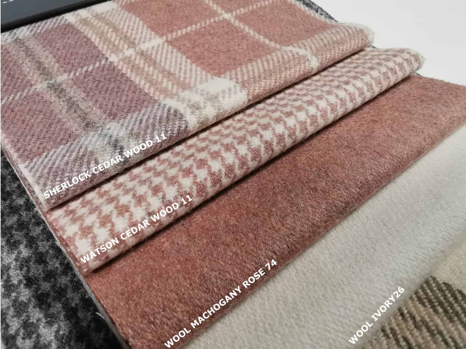 Sherlock Cedar Wood 11 to elegancka tkanina w kratę, wykonana w dużej mierze z wełny z recyklingu. Łączy w sobie klasyczny styl z nowoczesną funkcjonalnością i dbałością o środowisko.